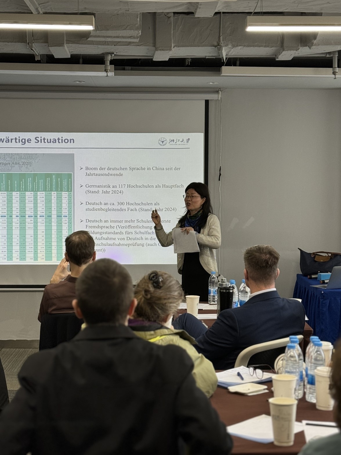 在第二天早上的开幕式上,DAAD中国地区总负责人Ole Engelhardt先生和DAAD北京代表处副主任刘潇潇博士强调了讲师们工作的重要性,他们是DAAD在中国推广德语的核心。DAAD亚太地区奖学金项目处处长Anna Katharina Rusche女士与参与者讨论了DAAD讲师在中国的未来以及如何找到合适的申请者。浙江大学德语系主任李媛教授展示了德语研究和对外德语在中国的历史和当前发展,例如越来越多的与其他领域和学科结合的综合课程的设立,以及对洪堡通识教育理想的回归,但也有教学的数字化等。