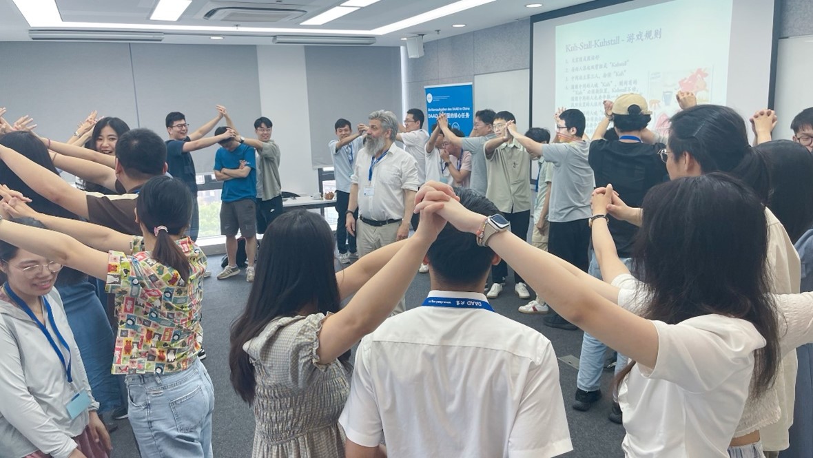 Am ersten Tag der Veranstaltung beglückwünschte der Leiter der DAAD-Außenstelle Peking, Ole Engelhardt, die Geförderten in einer Begrüßungsrede und eröffnete offiziell das Training.