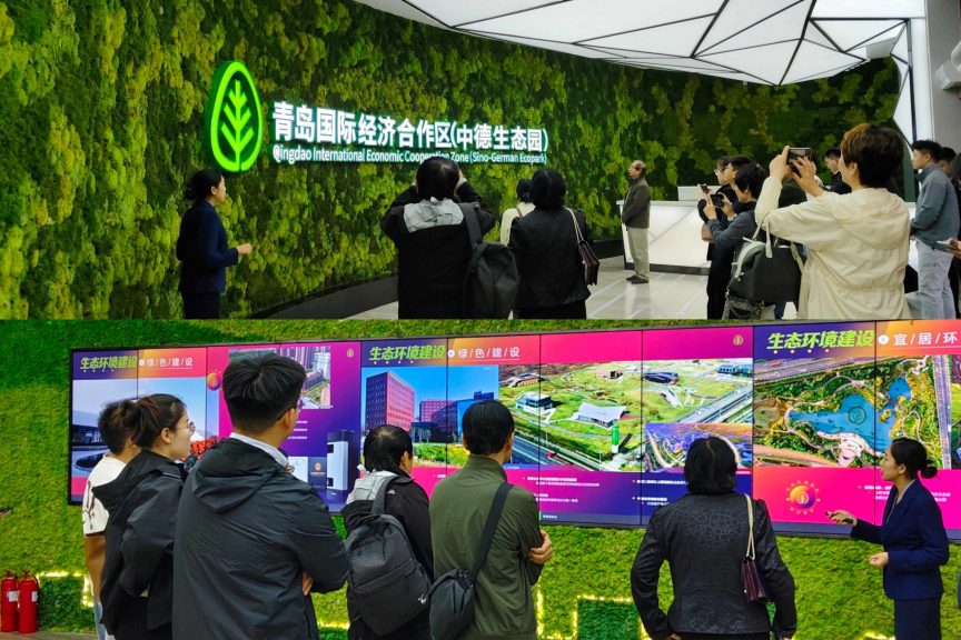 Der letzte Standort der Aktivität war der Deutsch-Chinesische Ökopark Qingdao – das Fenster zur internationalen Zusammenarbeit. Hier verwirklichen China und Deutschland gemeinsam mit Partnern aus der ganzen Welt ihre führenden Technologien in den Bereichen Innovation, Umweltschutz, Energie, Bildung und Kultur sowie Talentgewinnung mit fortschrittlichen Konzepten und modernster Technik.