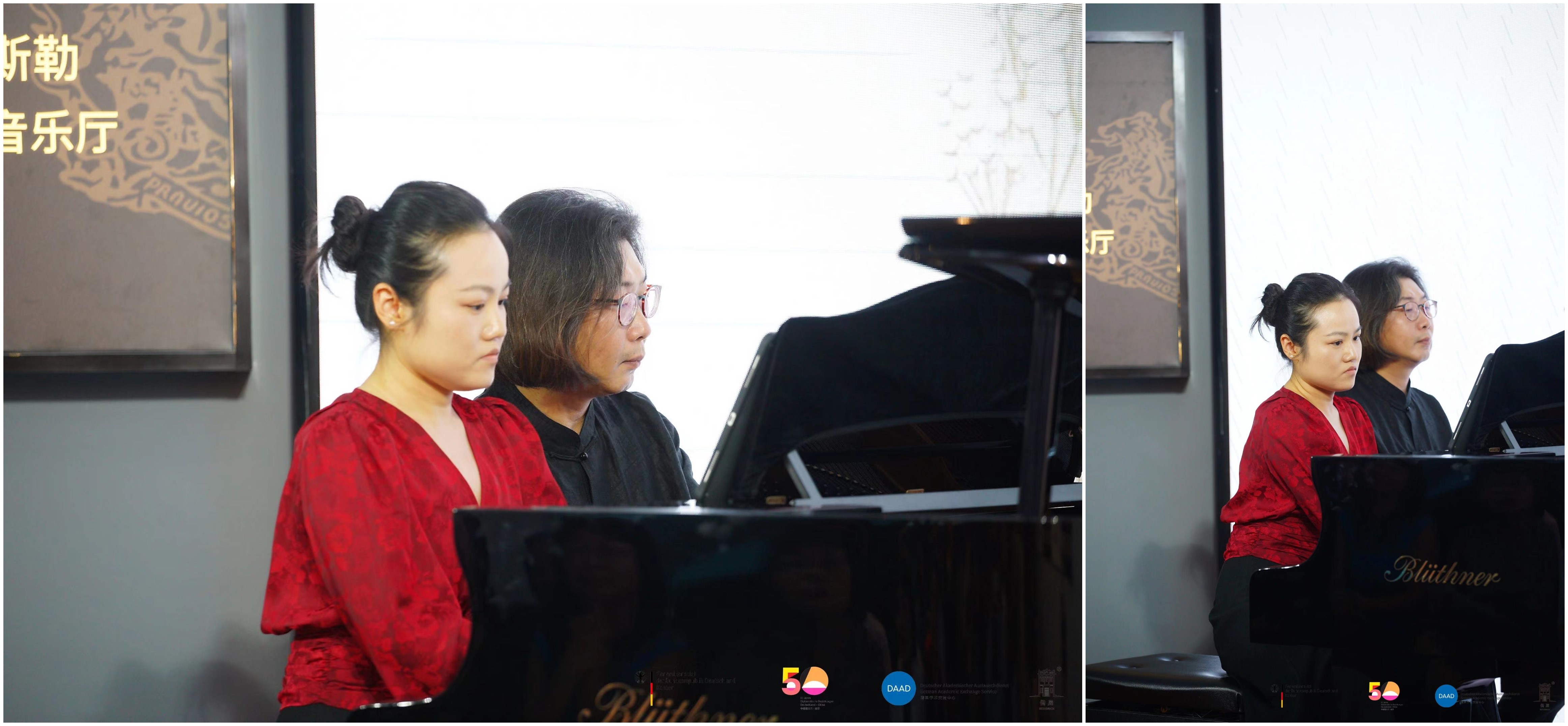 精彩的闭幕曲:时宇佳与黄维希钢琴四手连弹,演绎约翰内斯·布拉姆斯的《匈牙利舞曲》。© DAAD