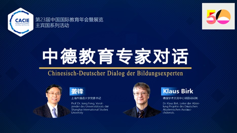 受中国教育国际交流协会的邀请,德国在今年成为第23届中国国际教育年会暨中国国际教育展的主宾国。为庆祝这一盛事,CACIE与德国学术交流中心重磅推出”CACIE2022主宾国系列活动”,年中的第一场highlight即本次的中德教育专家对话活动。该活动邀请了DAAD项目部的负责人Klaus Birk博士与上海外国语大学党委书记姜峰博士,两位专家以对话的方式,回顾中德两国教育合作的经典案例和有益实践并深入探讨新的历史环境下两国教育合作的创新发展路径。