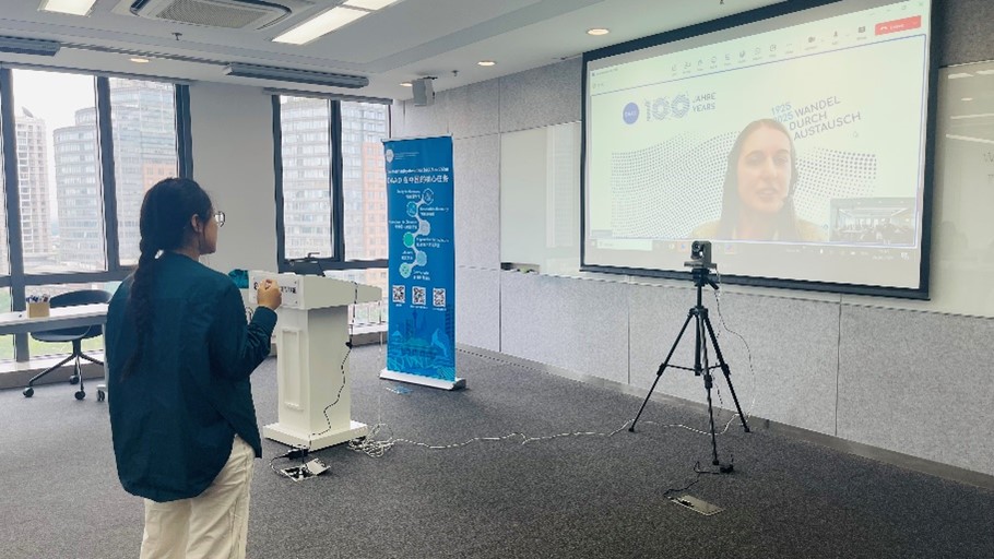 在培训过程中,DAAD波恩总部项目负责人Franziska Bayer也通过线上方式参与活动,为学员们详细介绍了DAAD相关手续的办理步骤和注意事项,确保他们在赴德前能够顺利完成各项准备工作。任婕女士则为学员们深入讲解了签证申请的流程和方式,解答了大家在签证环节可能遇到的问题。