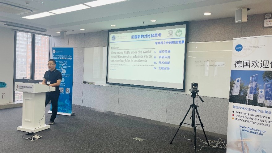 此外,两位DAAD校友——张婧博士和梁建宏副研究员也受邀参加了此次活动,并分享了他们的宝贵经验。张婧博士详细介绍了自己在出发前和到达德国后的准备工作,为学员们提供了实用的参考。梁建宏副研究员则从回国后的工作角度出发,分析了自己在德国期间遇到的问题及解决方案,并为学员们的职业发展提出了中肯的建议,引发了学员们的深入思考。