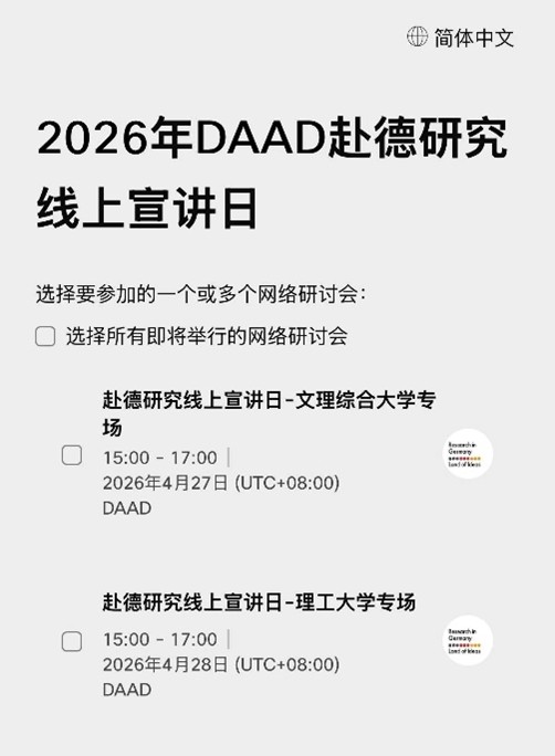2026年赴德研究线上宣讲日 Germany Research Days (Online) - 4月27日