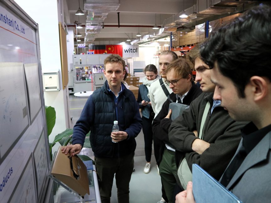 Tünkers 是一家专注于汽车领域的国际化设备制造商。其位于长江三角洲的工厂受益于成熟的供应链和本地化生产。该公司将德国的工程传统与中国生产相结合,为包括中国制造商在内的大型原始设备制造商提供服务。学员们与Tünkers 讨论了中国日益接近欧洲标准的劳动力市场和劳动法问题。我们得知,中国汽车制造商正在全球范围内扩张版图,并越来越多地使用中国供应商和装配公司,这使 Tünkers 等坐落于当地的企业受益匪浅。
