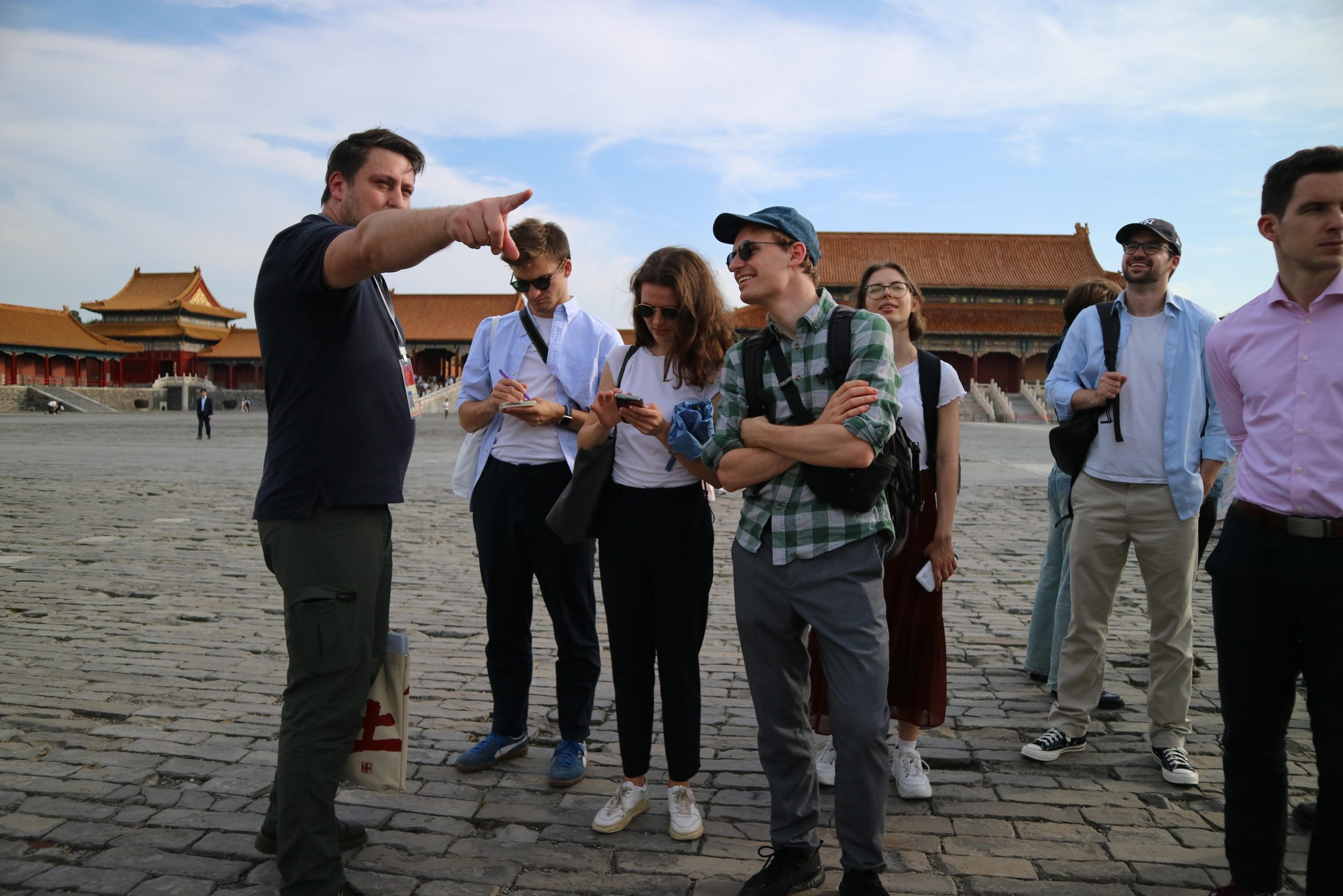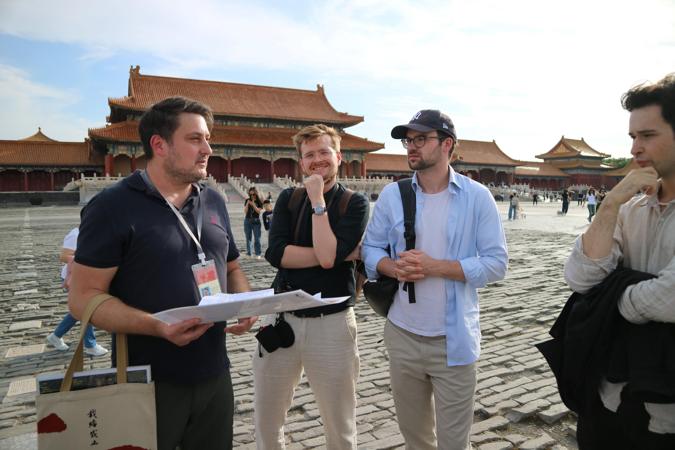 在Matthias的招待下,我们简单吃了午餐,然后从北京郊区直接前往中国古代皇权中心。在紫禁城,我们见到了Dominic Hosner,他是北京德国考古研究所的研究员,他带领我们参观了中国皇帝的宏伟迷宫。作为少数长期在紫禁城进行研究的外国人之一,Dominic为我们详细介绍了皇宫的历史和考古意义。此外,他还向我们介绍了他正在从事的树木年轮学项目。通过对从屋顶支架上取下的木材芯样本进行分析,可以根据年轮的数量和大小更精确地确定树木的年龄,从而确定建筑物的年龄。这是一项重要的发现,因为紫禁城的建筑来自古代中国的不同朝代。