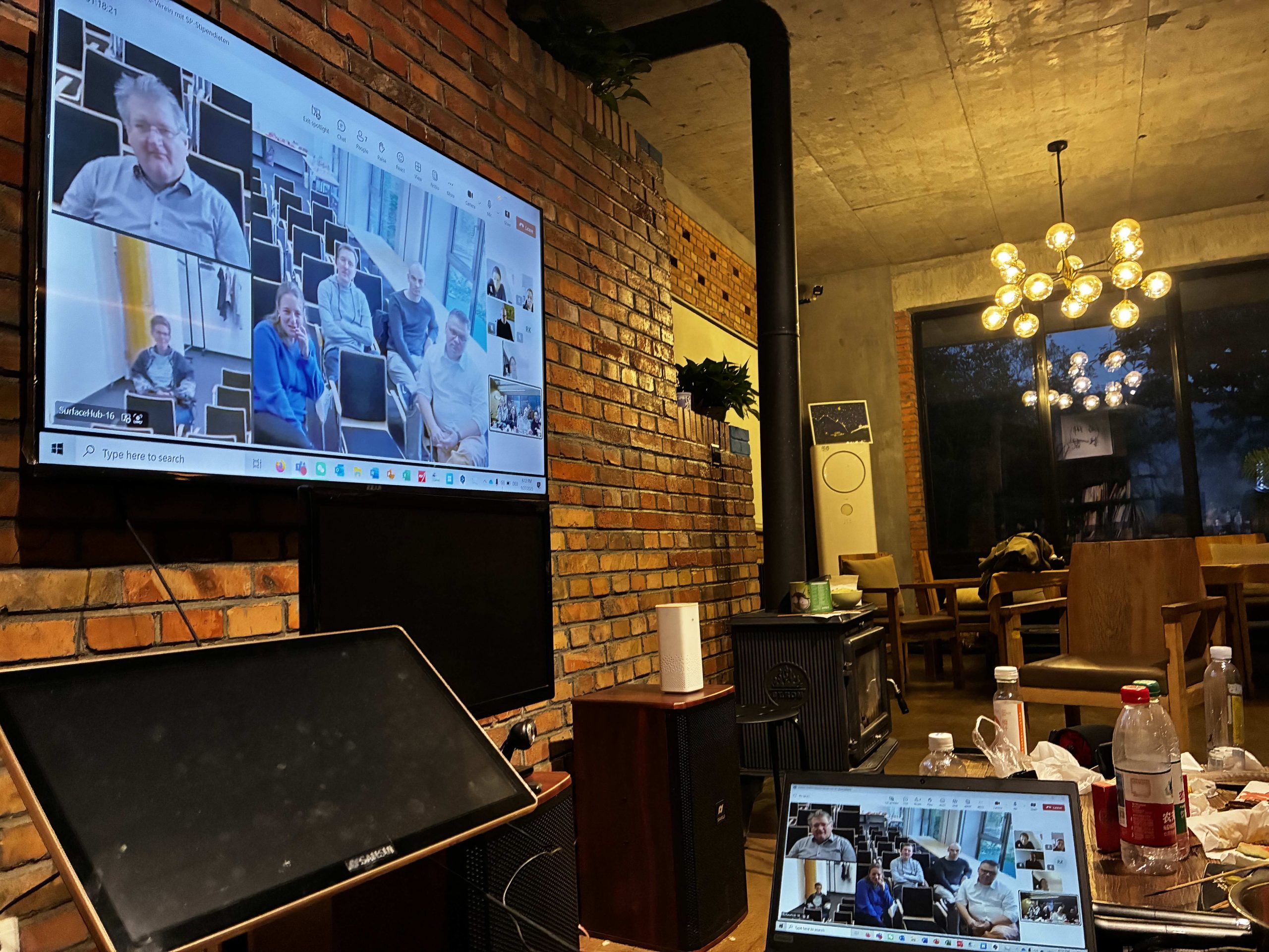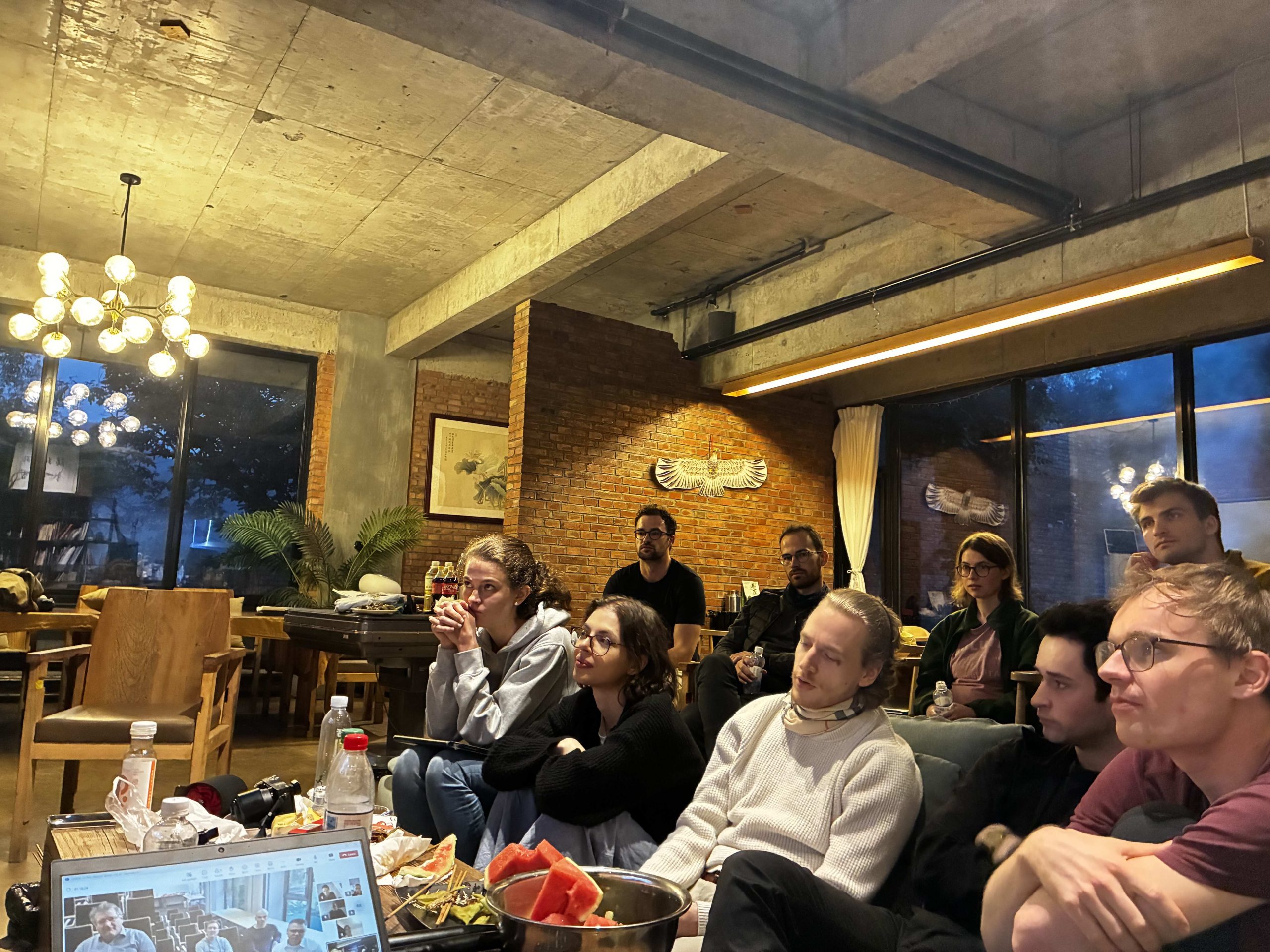 回到村子后,我们与校友会进行了在线交流。奖学金生们进行了简短的自我介绍,并与校友会成员进行了交流。校友会还介绍了即将举办的活动以及正在筹划中的指导项目。与校友会进行了愉快的交流后,我们以烧烤结束了这个夜晚。旅馆老板非常友好,不仅为我们烤了肉,还邀请我们品尝茅台酒,当然,这还包括中国饮酒文化的介绍。