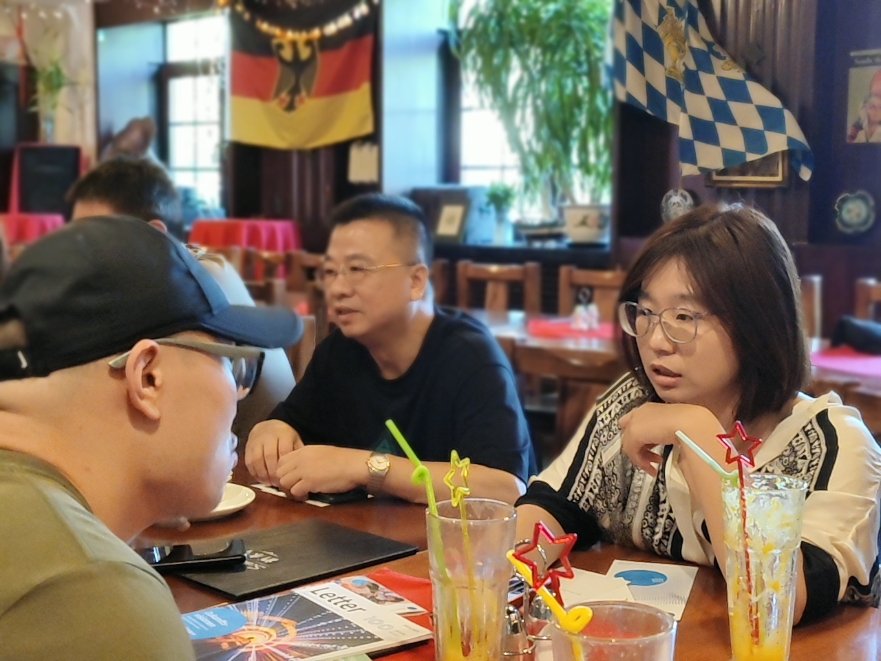 2025年8月10日, 位于北京三里屯的Schindlers Tankstelle餐厅化身”迷你德语岛”,众多德语学习者、DAAD校友及留德校友在此展开了约三个小时的德语交流。活动现场气氛热烈,持续回荡着德语对话声波。